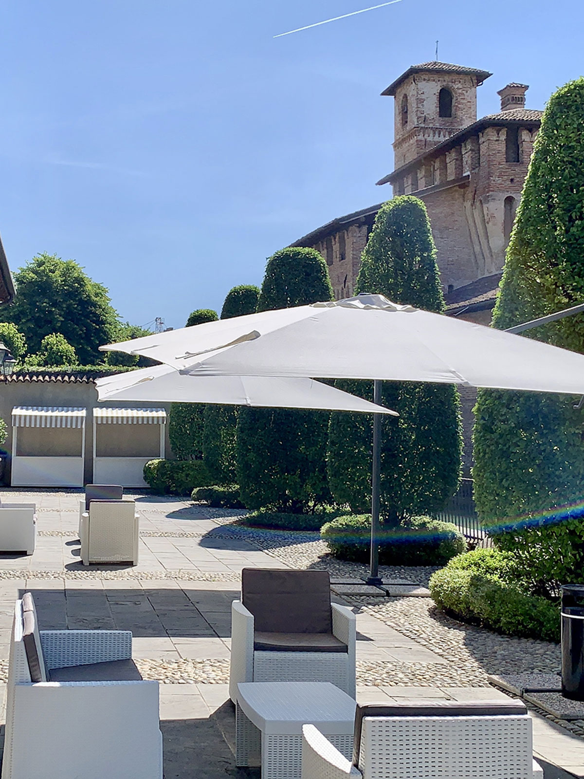 La corte di un castello medioevale reinterpretata con un design contemporaneo.